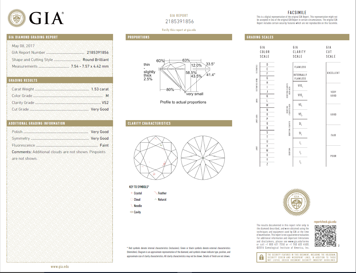 1.53 Karat Lose M / VS2 Rund Brillantschliff Diamant GIA Zertifiziert