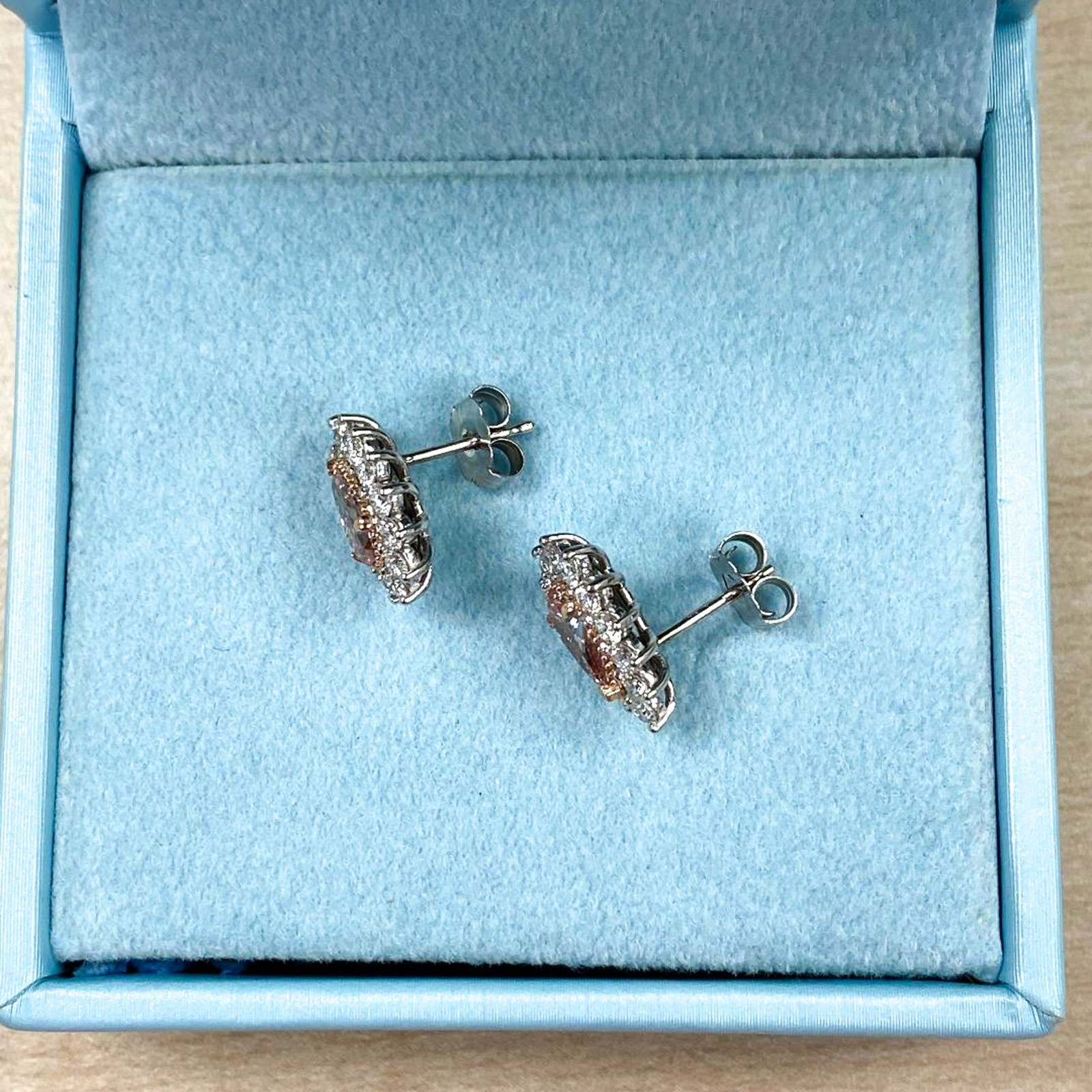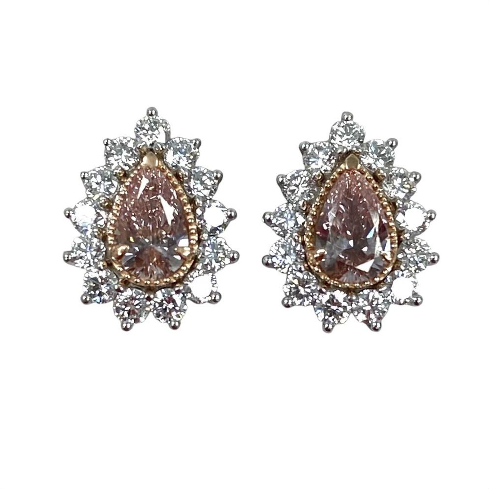 - 1.56 TCW Pear Lab Grown Fancy Intense Pink Diamond Stud Earrings 14k White Gold