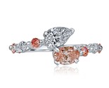 This modern bypass design diamond ring features 0.95 carat colorless pear and pink oval shaped lab grown diamond surrounded by of 0.69 carat round pink brilliant cut and colorless marquise brilliant cut lab grown diamonds in prong setting. Crafted of 14k white gold, the ring has a total diamond weight of 1.64 carats. The combination of pink and colorless diamonds, along with various cuts, creates a stunning visual effect, emphasizing the vintage Art Deco style!! The use of lab-grown diamonds ensures ethical sourcing while maintaining brilliance and quality! Our products are all hand made with quality and care, in the heart of the diamond district on 47th Street in New York City. Our dedication and commitment to fine work and quality exceeds all others. Since all of our products are handmad