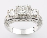 18K White Gold Three Stone Princess Cut Diamond Engagement Ring Size 6.75 TDW = 1.70 ct