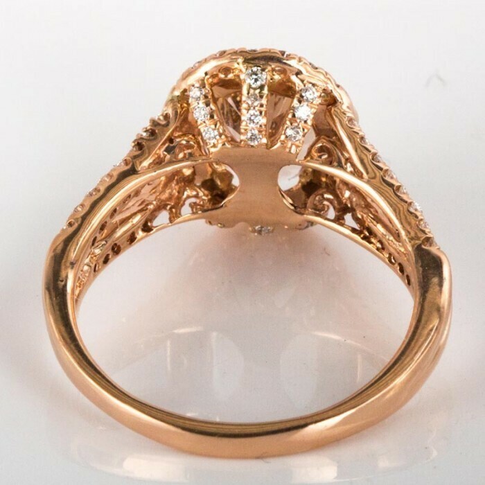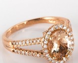 - 1.83 TCW Oval Peach Morganite Diamond Engagement Ring 14k Rose Gold