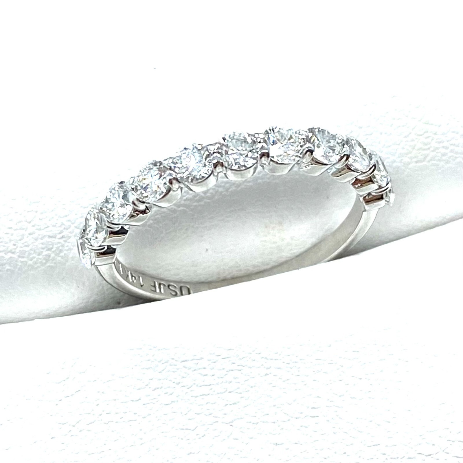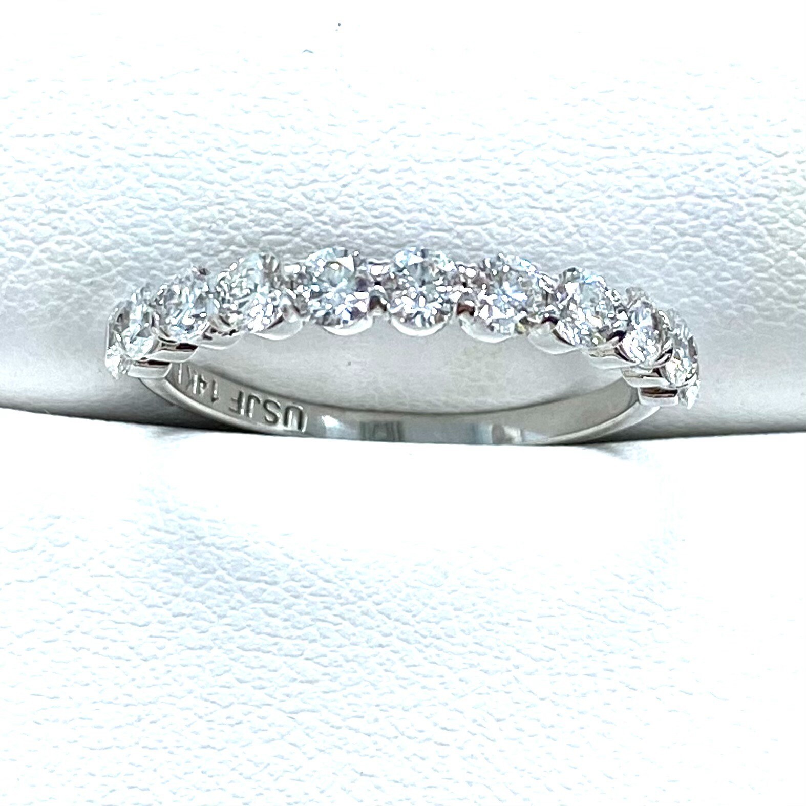 - 1 Carat Round Lab Grown Diamond Wedding Band Half Eternity Stacking Ring 14k