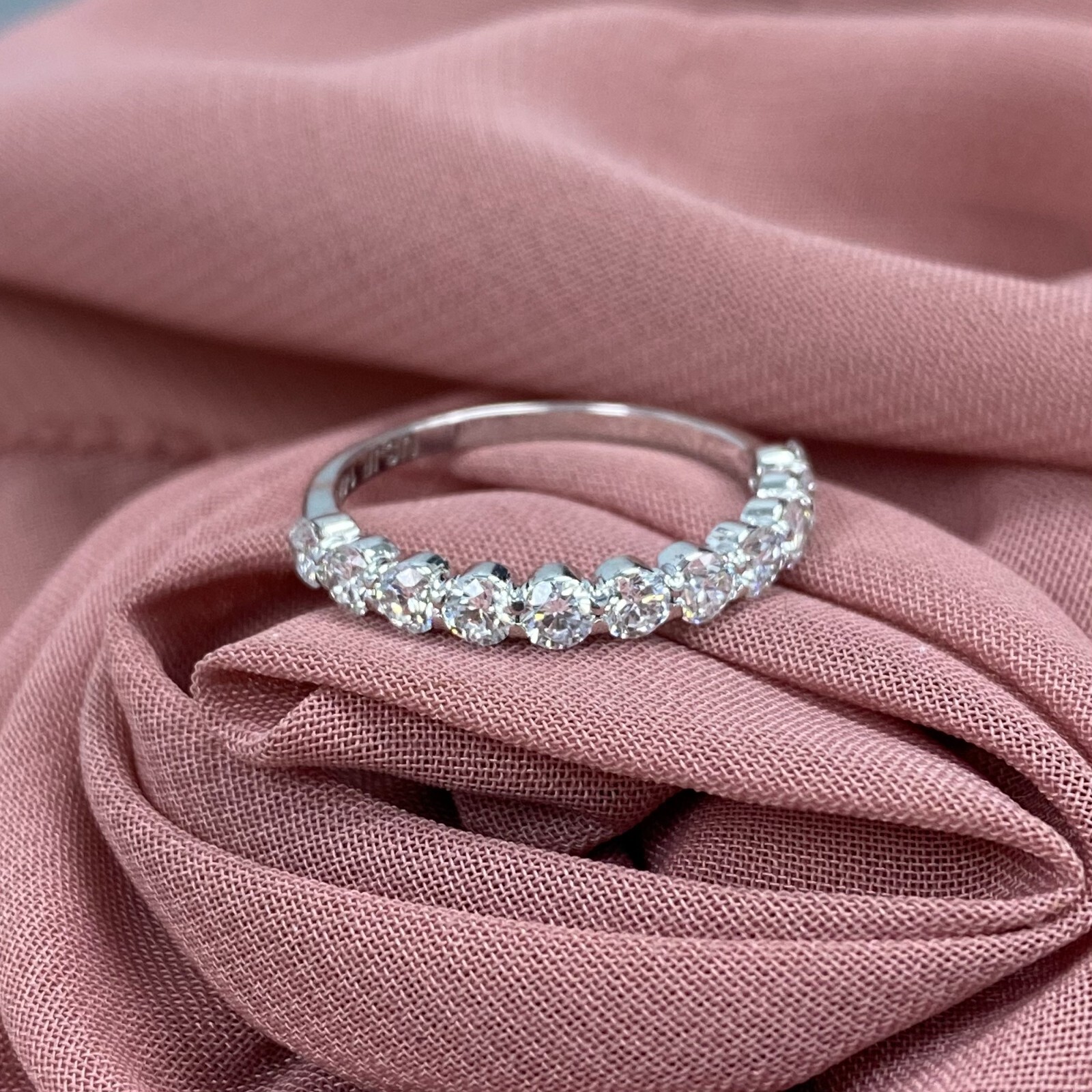1 Carat Round Lab Grown Diamond Wedding Ring Half Eternity Stacking Band 14k