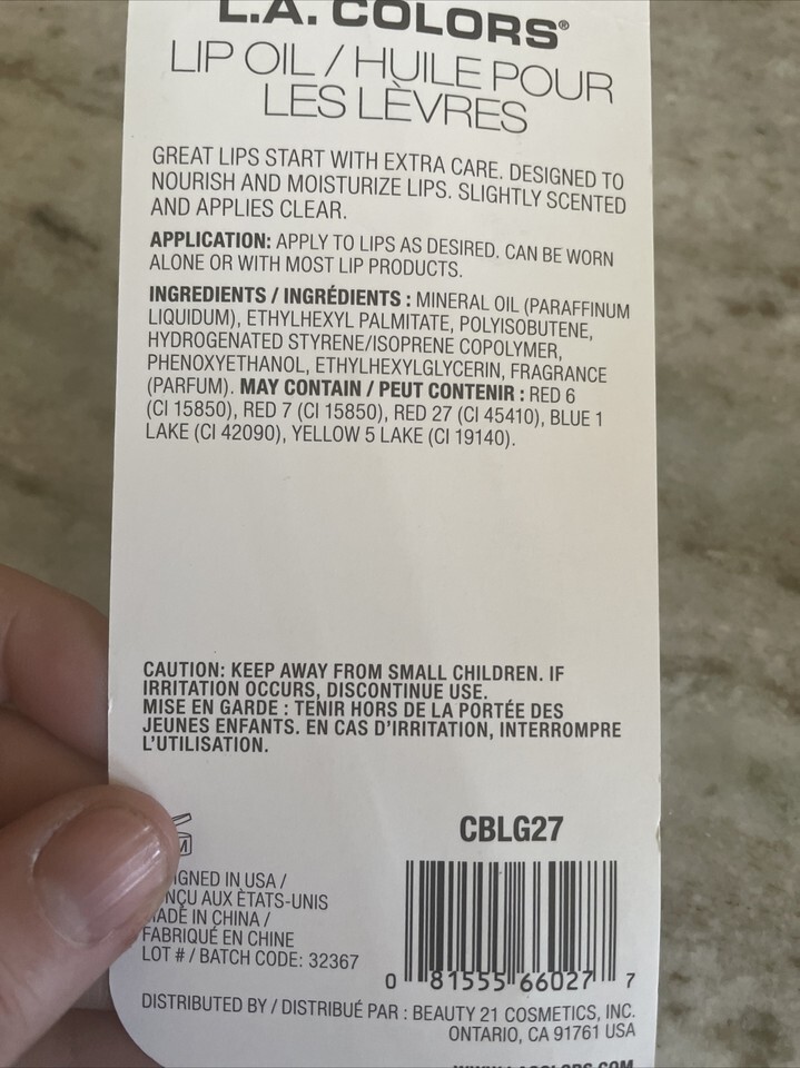 1 L.A. Colors Lip Oil ~ MINT CBLG27 ~ New Lip Gloss Slant Tip Wand