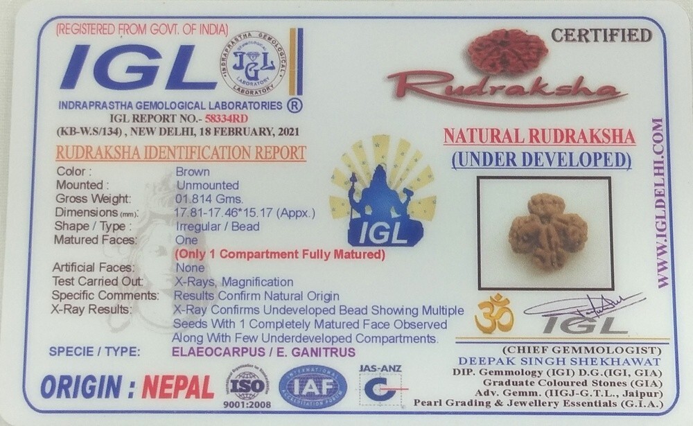 Attachment : Lab test report which proof?s it?s Authencity of originality will also shipped with this rudraksha