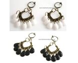 STYLE: Spring CLIP-ON 13MM GREY BLACK HOOP WITH Dangle Earrings