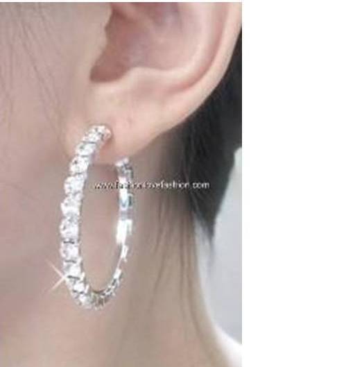 1 Pair WOMEN'S Clip On Rhinestone Hoop Earrings
