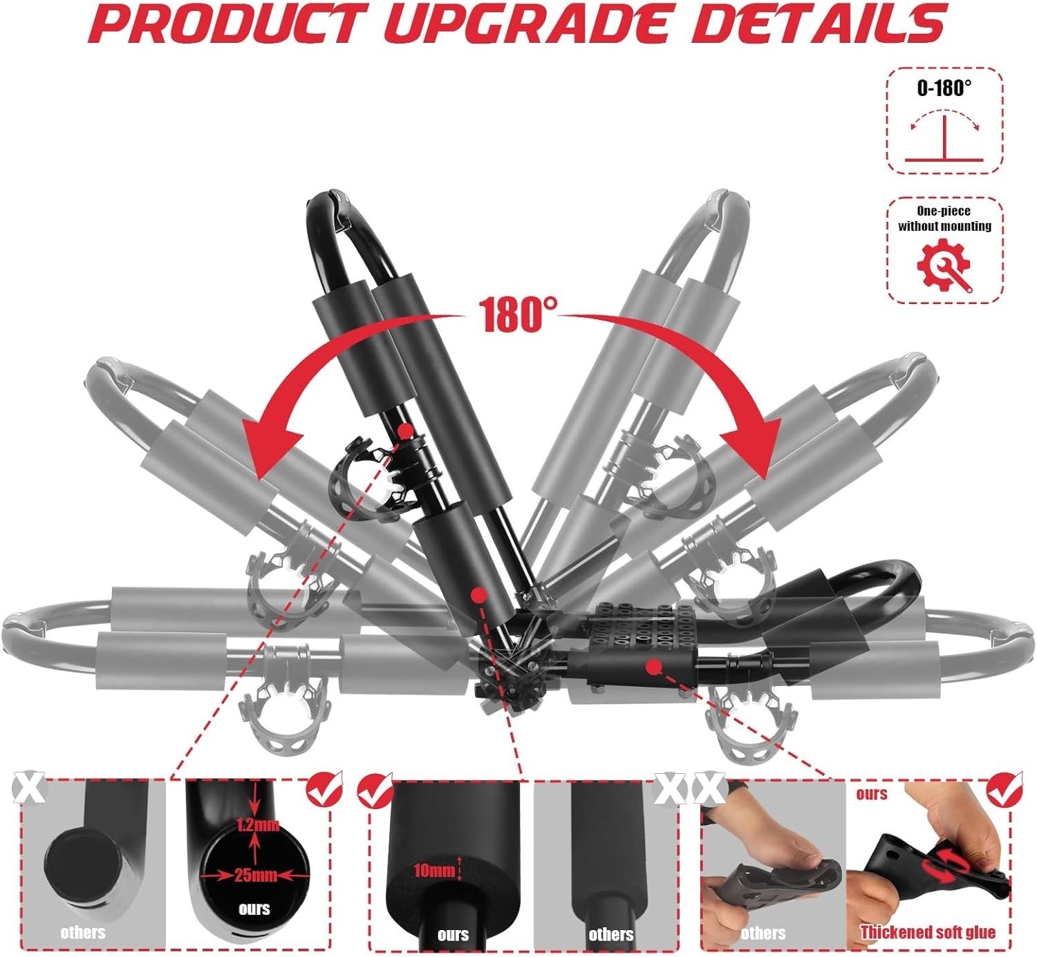 Use the handle to adjust the rack from 0 to 180 and fold it to adapt to different shapes of kayaks. The adjustment part is made of carbon steel rather than plastic, which is consistent with the rack material, which is more firm and convenient.
