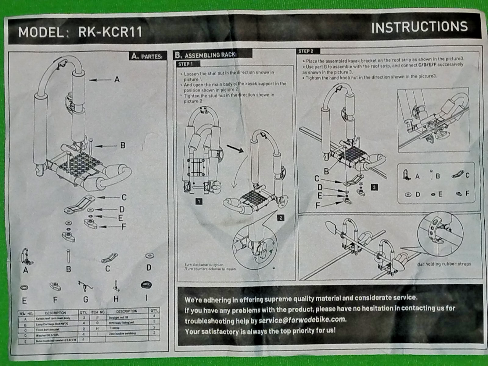 - 1 Pair FORWODE Kayak J-Bar Folding Adjustable Roof Rack with Accessories