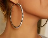 - 1 Pair Silver Clip On Rhinestone Hoop Earrings Extra Large 2 1/2" Or 65 MM