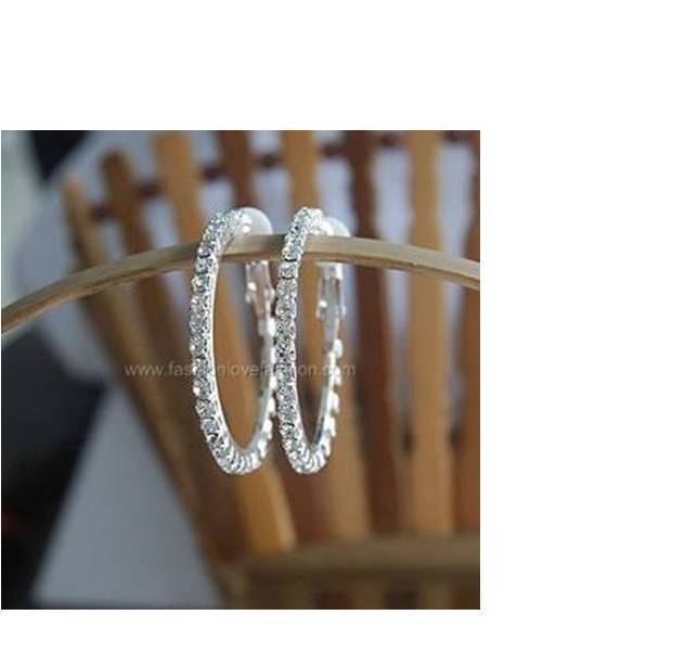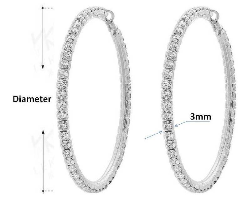 1 Pair Silver Clip On Rhinestone Hoop Earrings,X Large 2 1/2" Or 65 mm