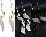 1 PAIR SPRING CLIP ON OR PIERCED SILVER/GOLD/BLACK TWIST DROP DANGLE EARRINGS
