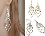 1 PAIR SPRING CLIP ON OR PIERCED SILVER/GOLD/BLACK TWIST DROP DANGLE EARRINGS