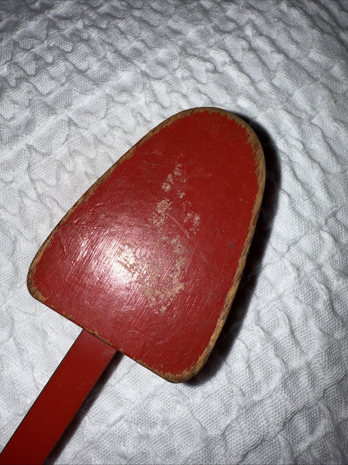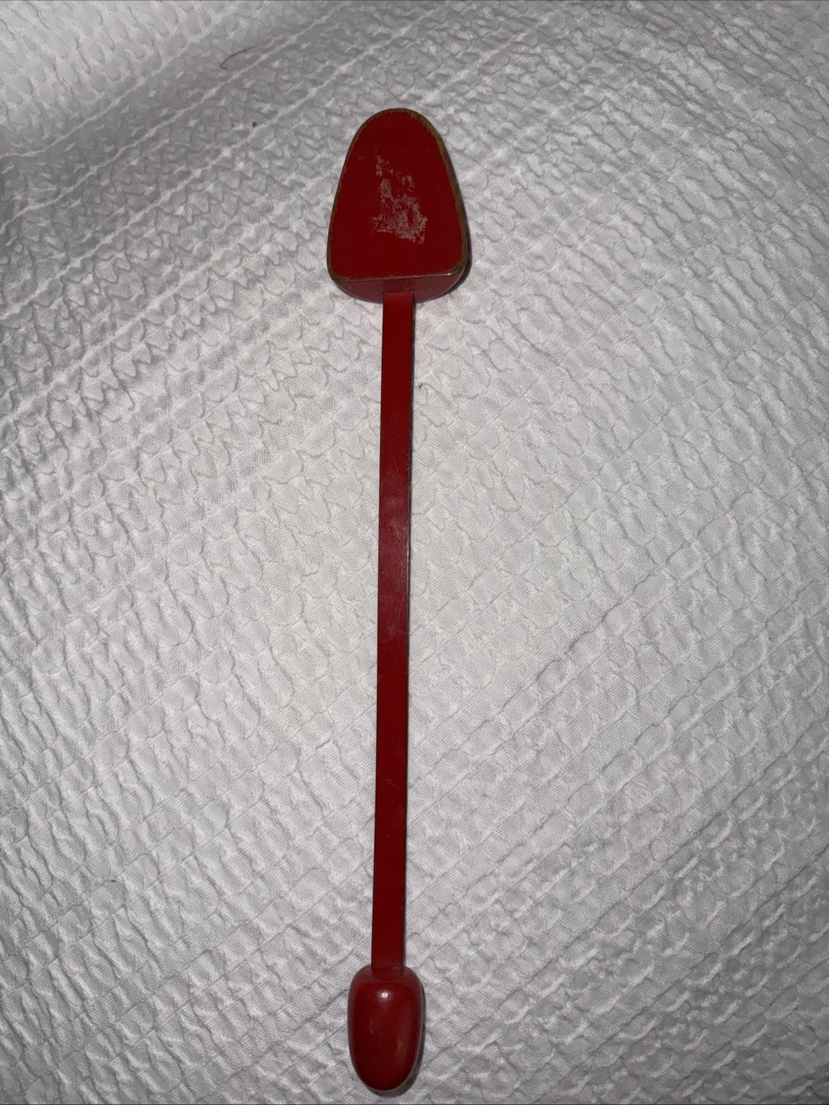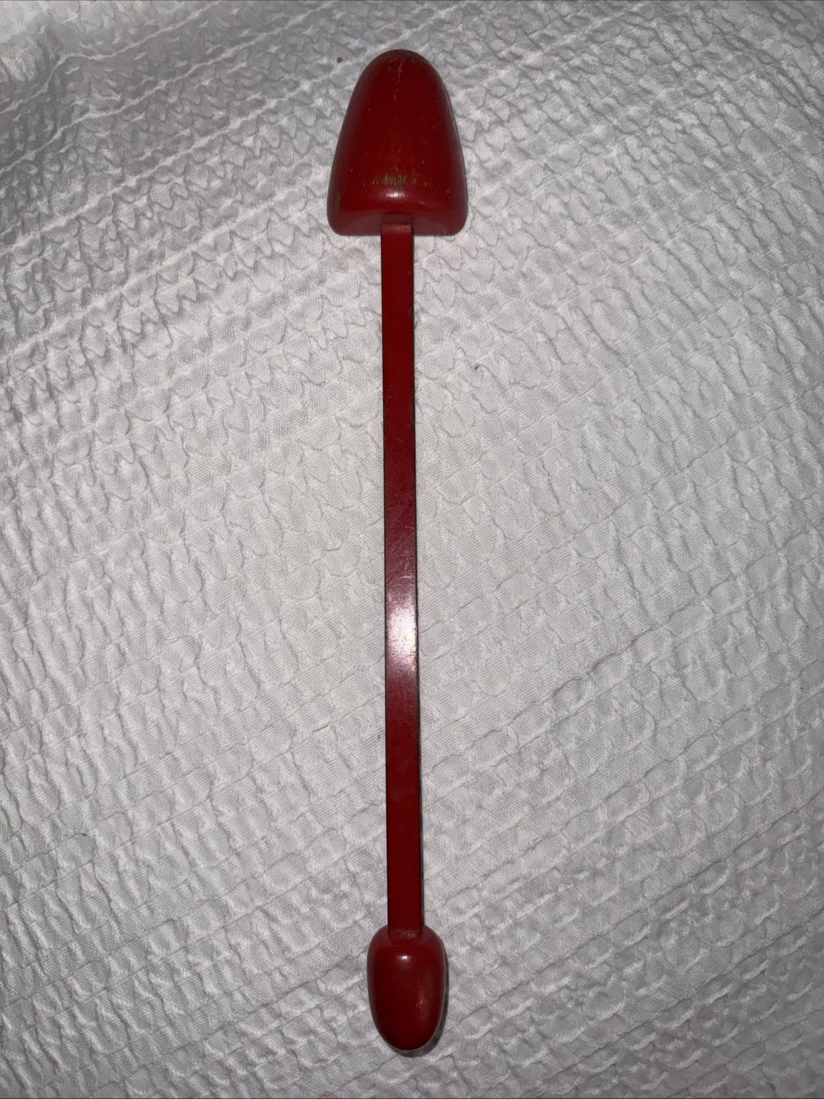The product is a red shoe tree shaper stretcher made of wood and metal, designed for adults of any gender. It is an original vintage accessory that has not been modified. The material combination of wood and metal creates a durable and sturdy piece for shaping and stretching shoes. This antique shoe tree is a practical and stylish addition to any collection of vintage accessories.
