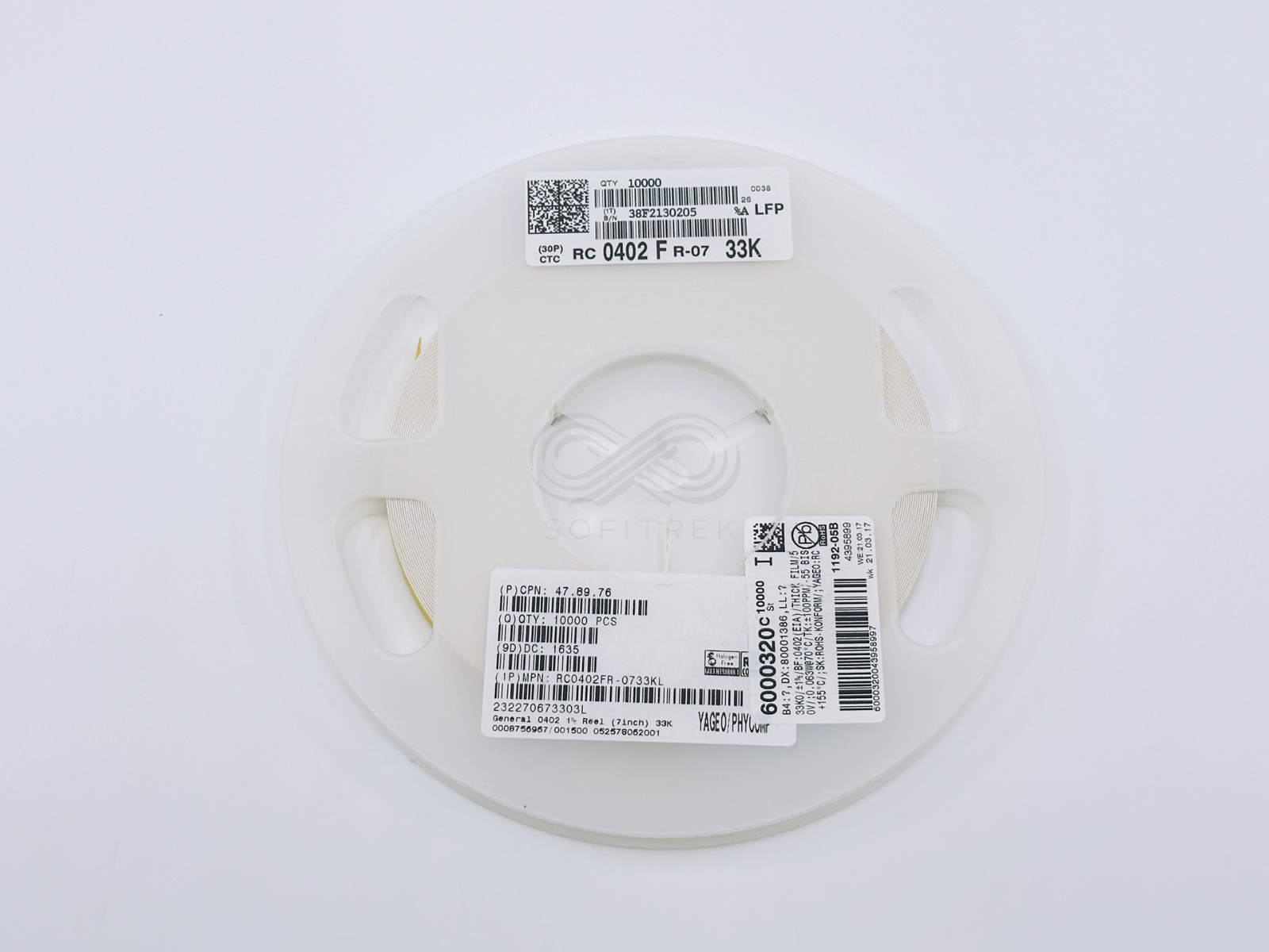 New Full Reel of 10,000 Pieces - RC0402FR-0733KL YAGEO 33K Ohm 1% 1/16W 0402 SMD Thick Film Chip Resistor