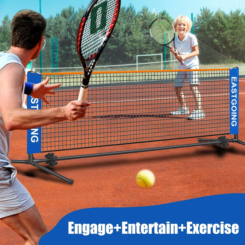 ?EASY TO CARRY?Eastgoing tennis practice net weighs 8 lbs. The poles are connected by a durable bungee cord and assemble in bunch. And Comes with a heavy-duty 620D Oxford carry bag.With the durable and light carrying bag, You can play on backyard, beach, driveway and any flat area.especially for the small space place.