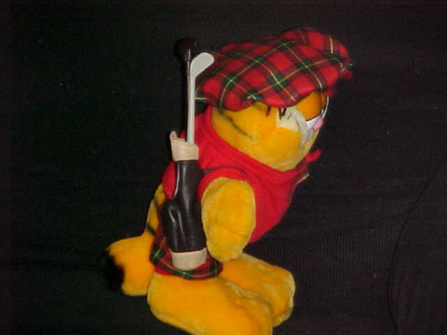 Hello everyone, now at bottom of each of our item page is our word rating plush chart. Please check it out and read full item description before using the buy it now price. Ok here's a rare Golfer Garfield Plush Toy With Tags, which is in excellent use condition. Garfield is wearing matching red plaid gold outfit and holding brown golf bag with two golf clubs (one dark brown and other is light grey). Garfield also is orange plush, hard plastic shiny eyes and nose, black stich mouth, hang tag attach to left side of head, and stand on his own 10 inches tall. Tags reads Paws 1978 Fine Toys For Spencer Gifts. Please see picture's. Winner bidder pays by Zone and Zip Code for priority mail shipping (up to 2 lbs) handling (1.50) plus required delivery confirmation fee's US only. Sorry we do Not Ship to Canada or Internationally. Please only bid if you have a united states street address to ship to. Sorry but Immediate Paypal payment is required when using Buy It Now, E-Checks from Paypal are held 3-5 business days until it clears before item is ship. Since we are limited on our picture space, pic will be deleted after the end of auction, so if you would like to see pic after the auction, please print out picture before the auction ends. We due not do returns, so Please read full item description, all sales are final and are sold as worded in item description. Please take a moment and check out our other great Disney plush and character toys which are listed sale this week. New Rating Plush Chart. NEW: Comes from a factory or department store and has not played with. MINT Or LIKE-NEW: Looks new but might still been played with but shows no wear on the Plush itself but still might have a flaw (like a odor, etc., and might not been wash even though we strive very hard to make all our plush smell free but can not guaranteed them) EX. COND: Some minor play wear and might have some minor flaws which would be in the item description. VERY GOOD: Has been played with and has flaws. GOOD: Has been played with a lot. POOR: We try not to sell any real poor condition toys. Thank-You and Have A Fantastic Week