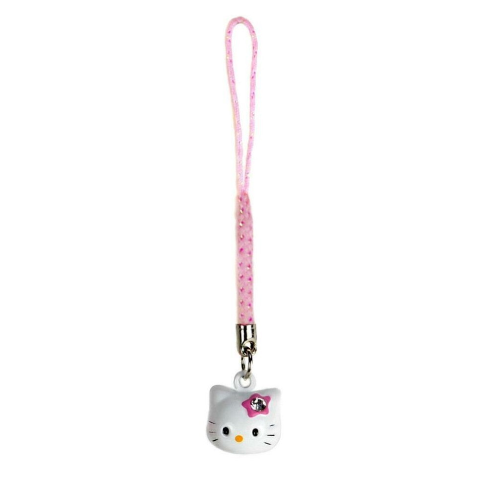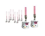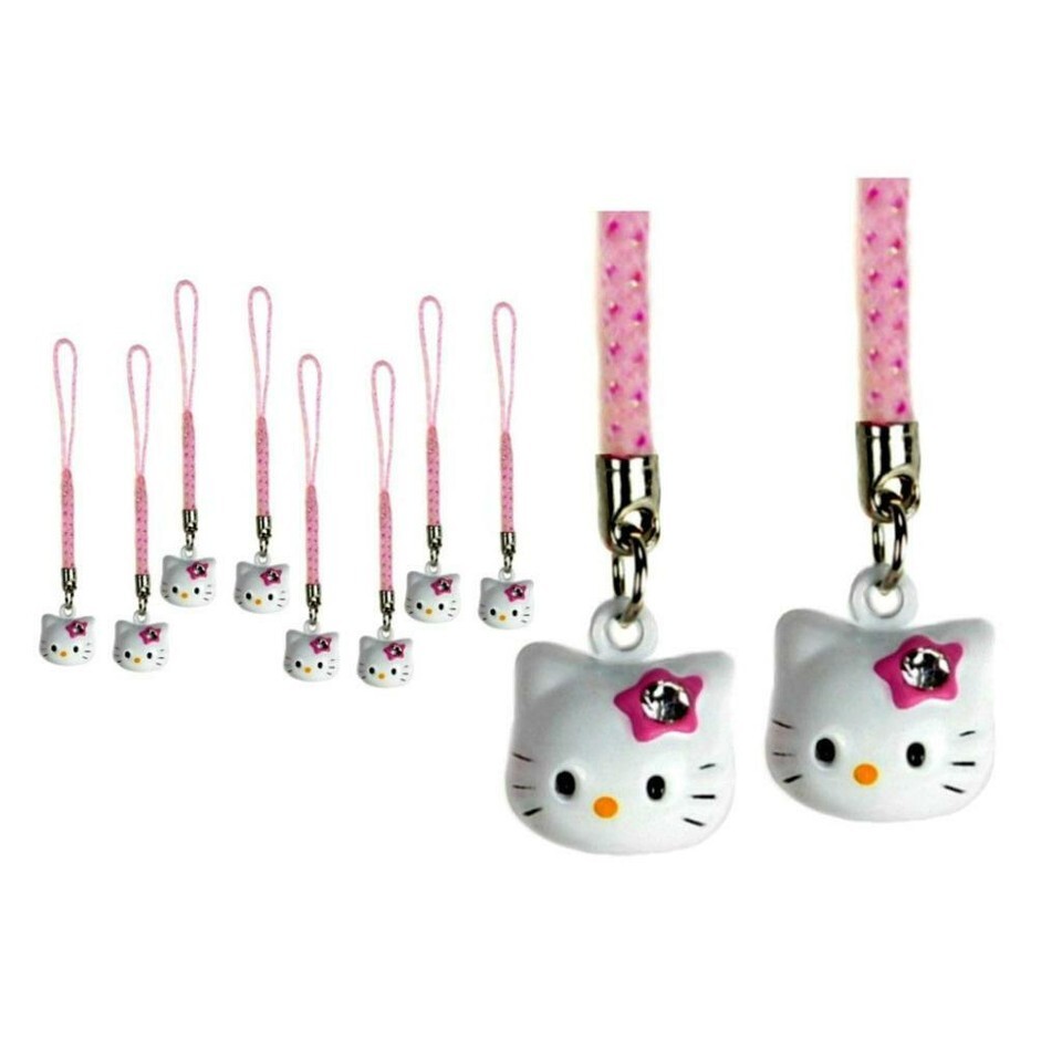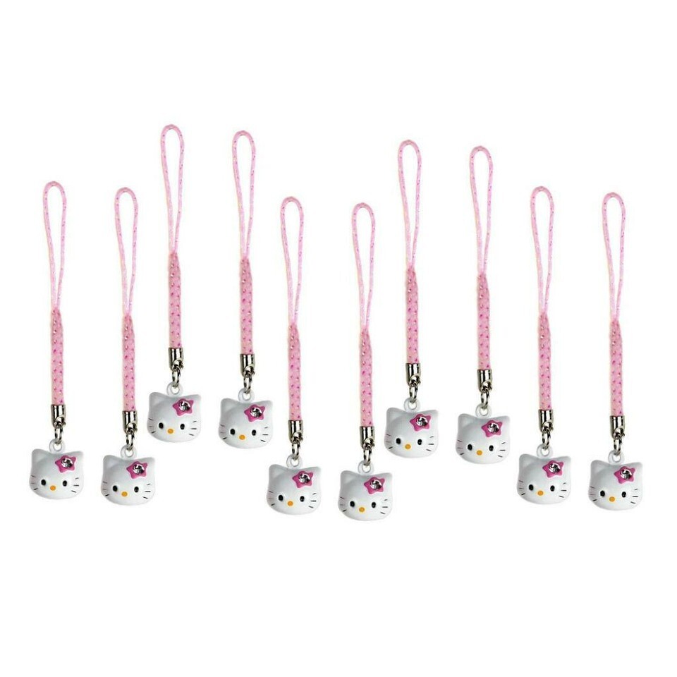 - 10 HELLO KITTY BRASS BELL CHARMS Pink White Craft Mobile Cell Phone Strap Set