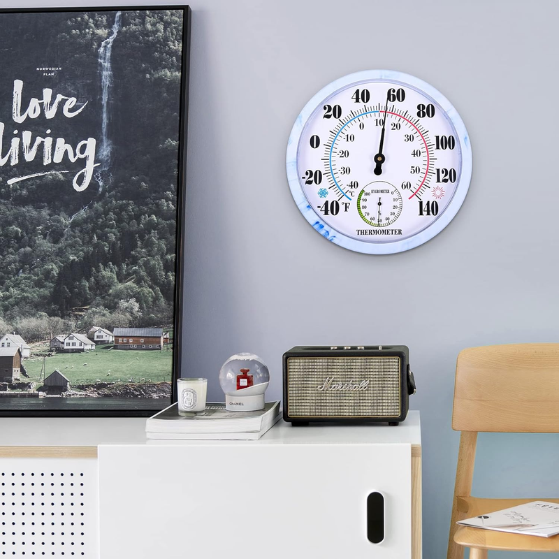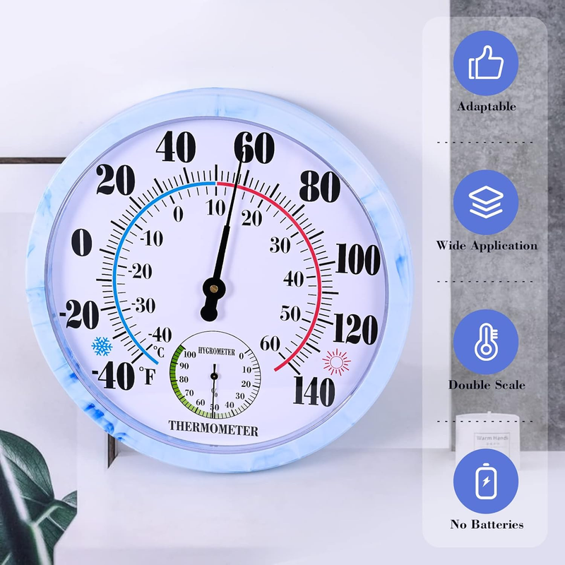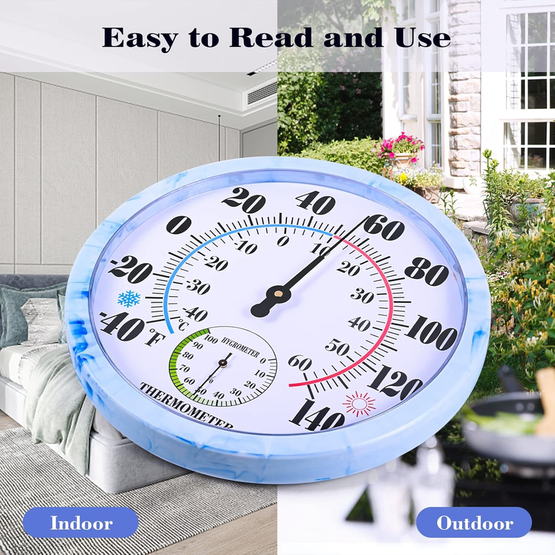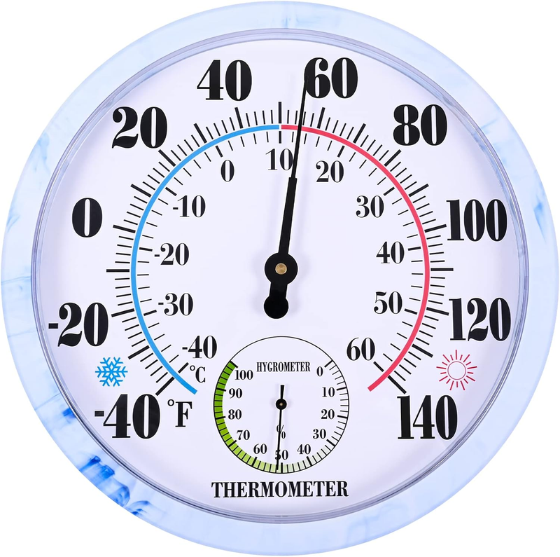 - 10'' Indoor Outdoor Thermometer Hygrometer, Wall Thermometer Hygrometer Analog,