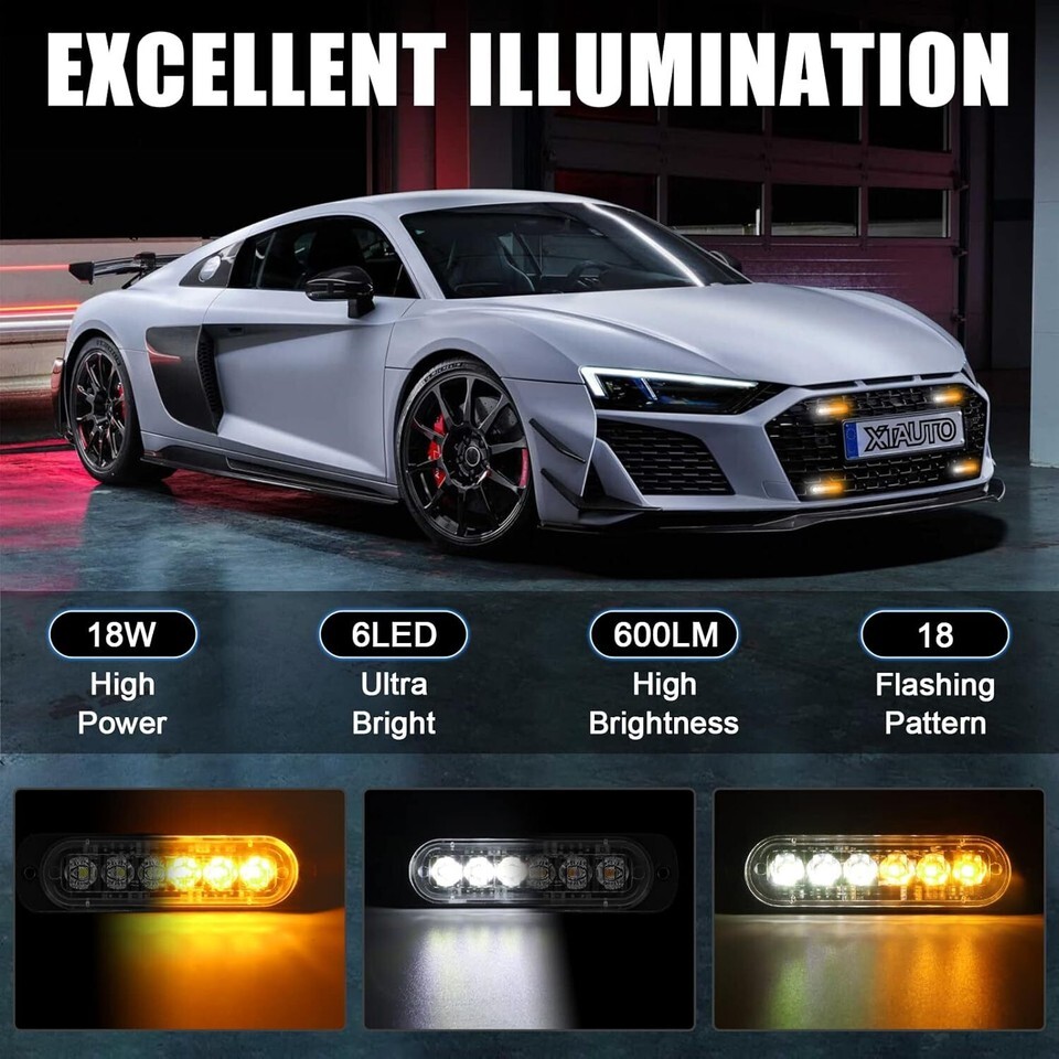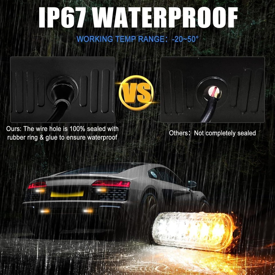 ?HIGH INTENSITY LED LIGHT?Super Bright led Strobe Lights, adopting 6pcs high intensity LED chips with clear PC lens for maximum illumination, improve the overall visibility and distant visual clarity, much brighter than the standard Strobe Lights. Super bright at day and night to ensure your driving safe.