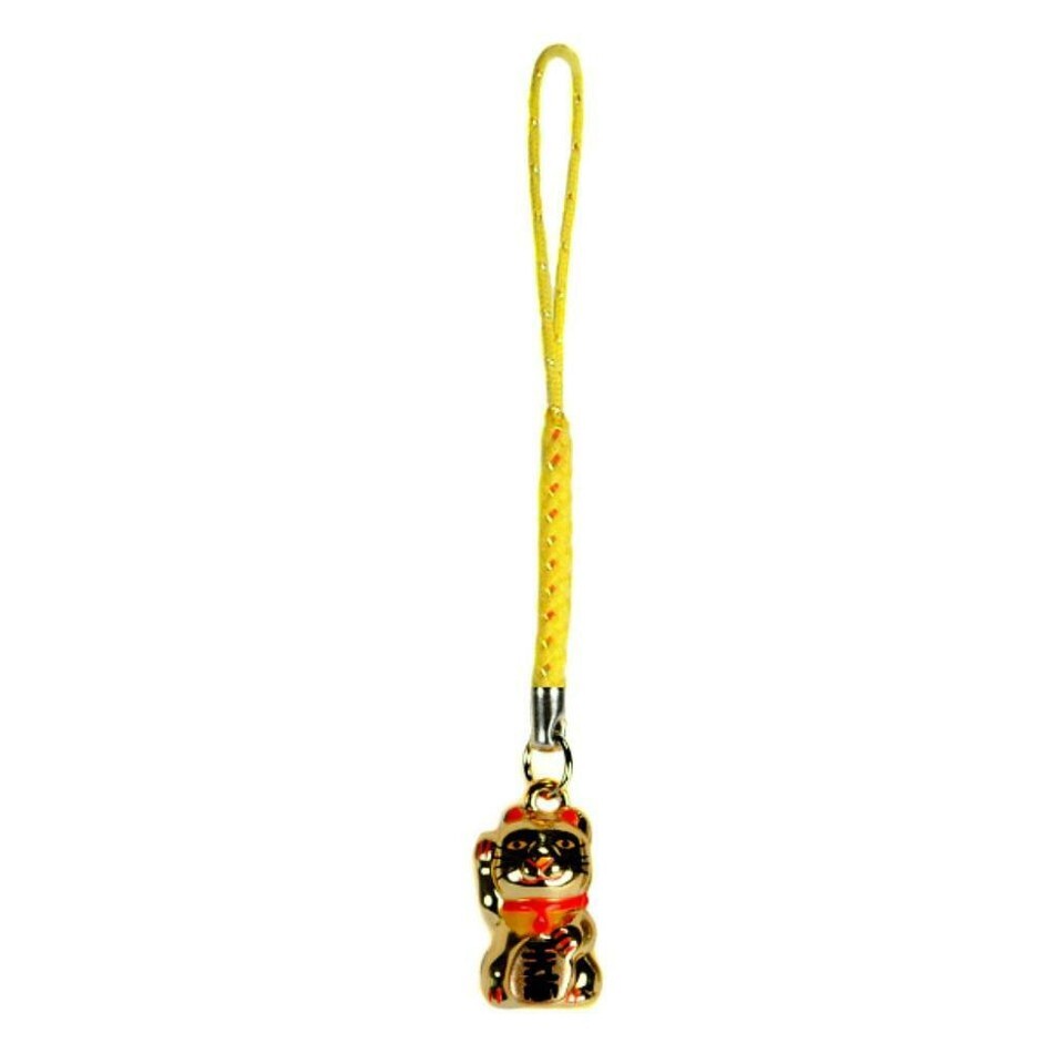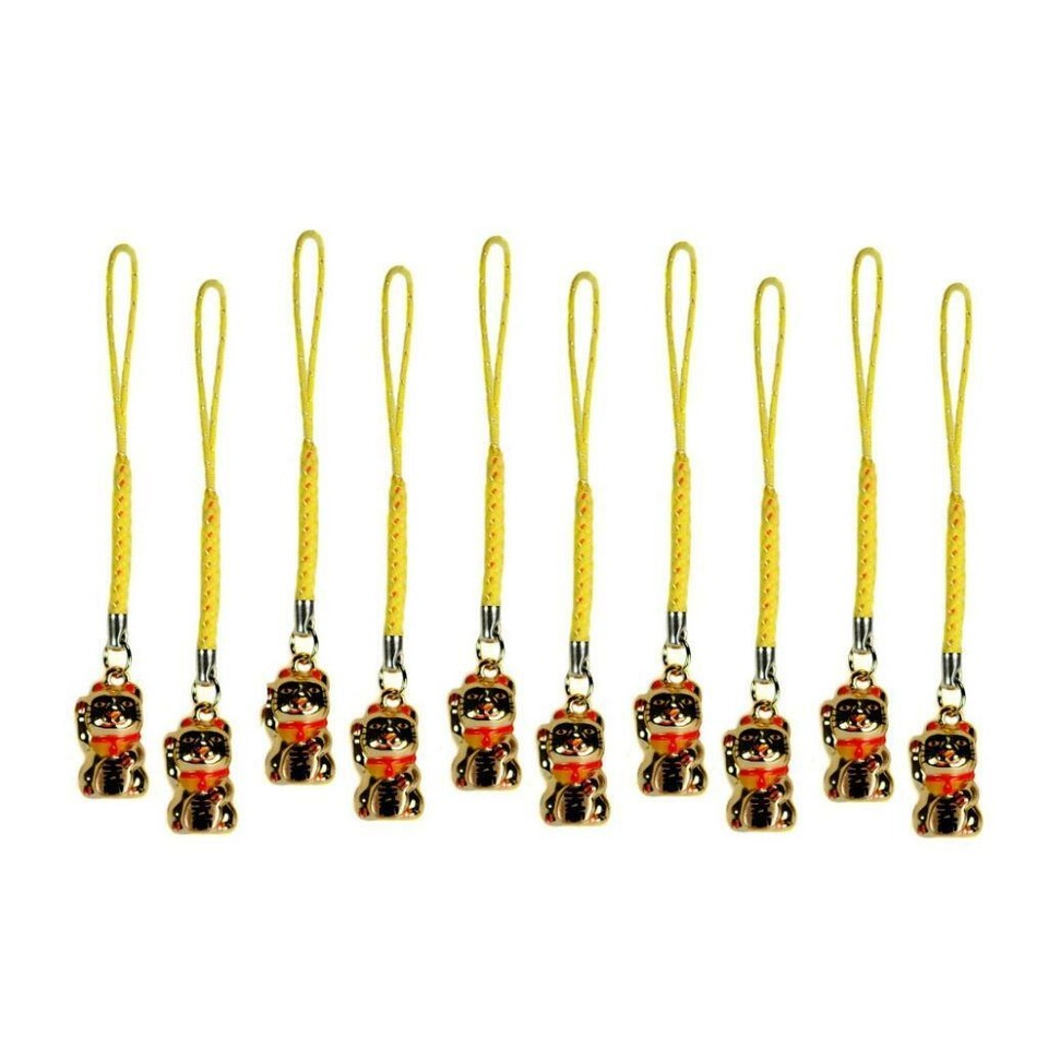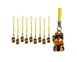 10 LUCKY GOLD CAT BELL CHARMS Kitty Maneki Neko Brass Hanging Phone Strap Set