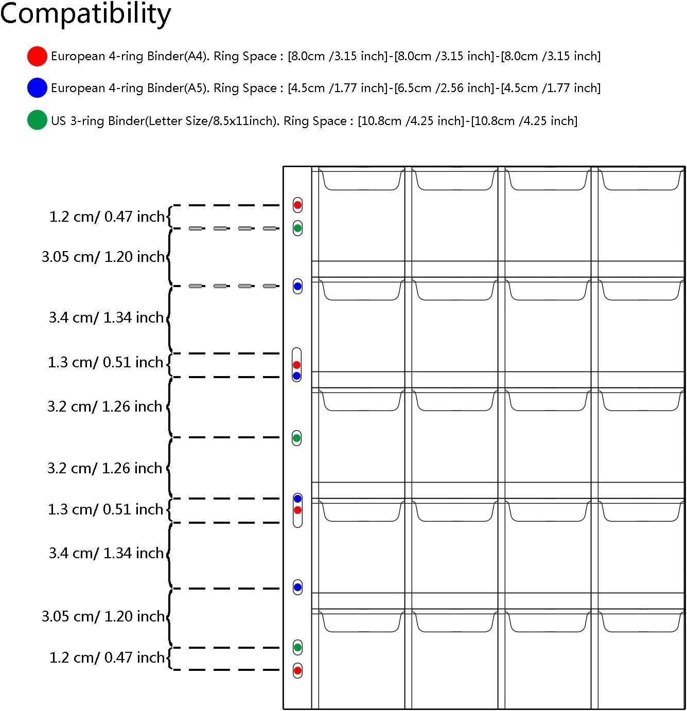 Product Size: Each sheet measures 28.0cm x 21.0cm (11.02" x 8.27") with 20 pockets, each sized at 45mm x 45mm, ideal for various coin types.
