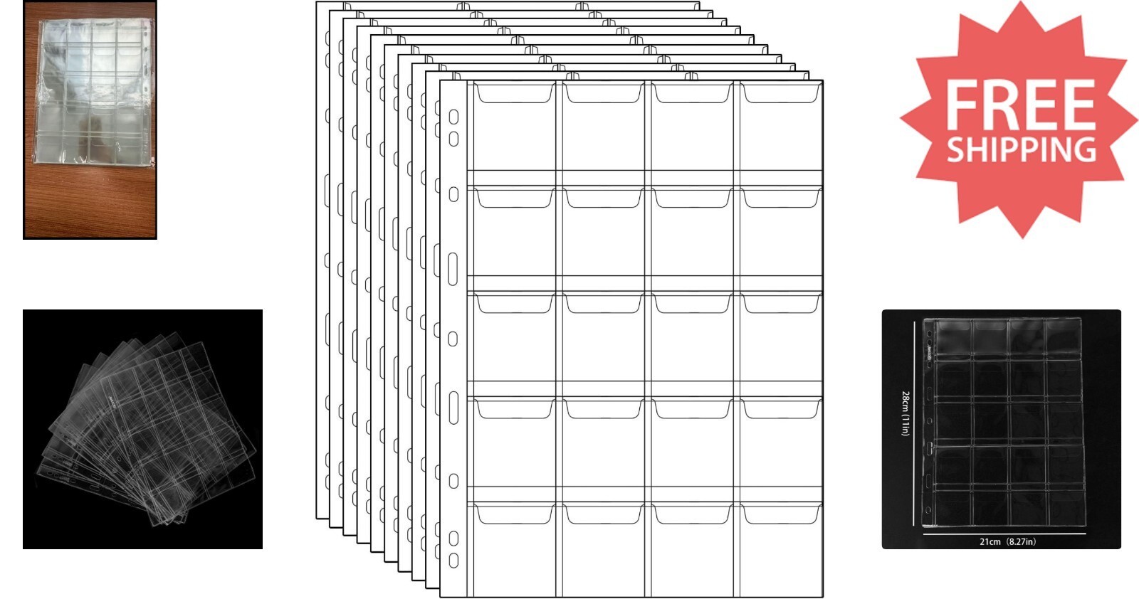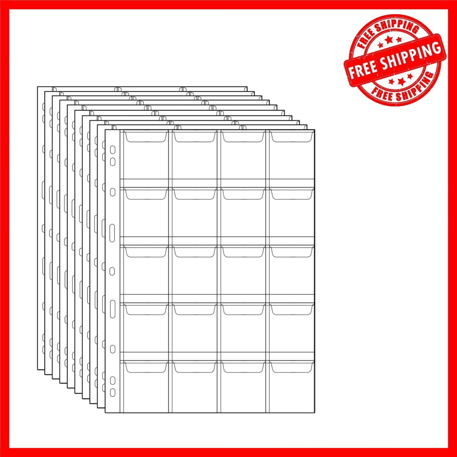 - 10-Pack Coin Pages - 20 Pocket Insert Sheets for Safe Storage