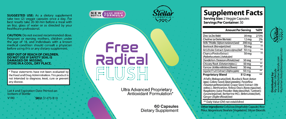 - 10 Pack Free Radical Flush, super anti-oxidant & digestive detox-60 Capsules x10