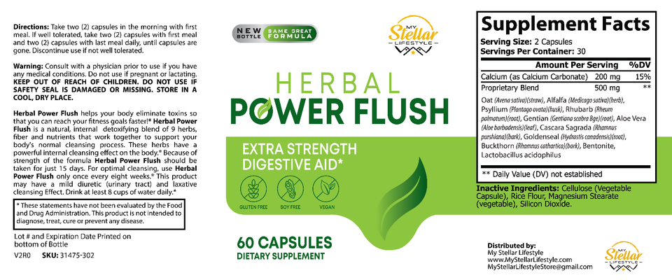 10 Pack Herbal Power Flush, ayuda digestiva extra fuerte-60 Capsulas x10