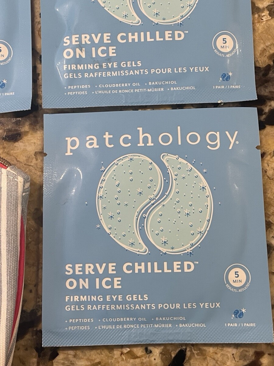 - 10 Pairs Patchology Serve Chilled on Ice Firming Eye Gels in cosmetic bag
