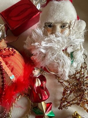 - 10 x vintage and unique Christmas tree ornaments from France: Santa, etc