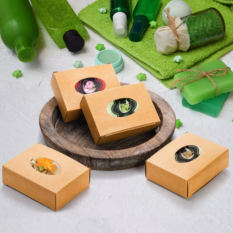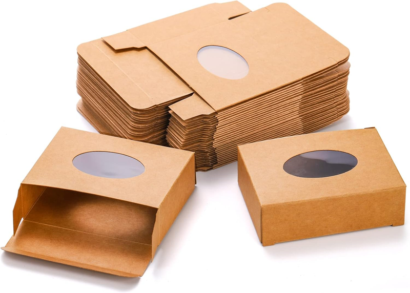 - 100 Pack Soap Boxes for Handmade Soap, Paper Treat Boxes with Clear Wind