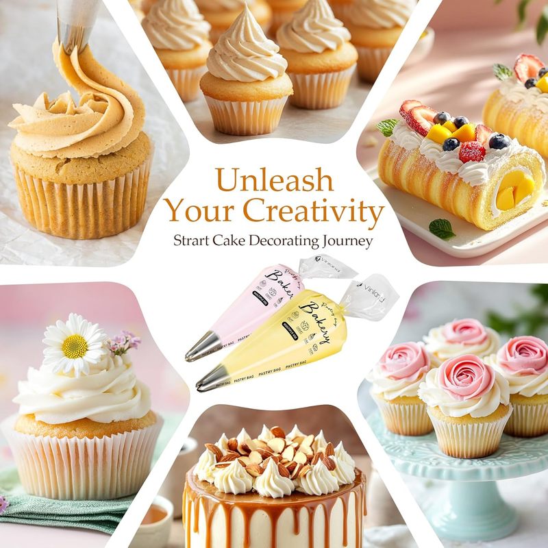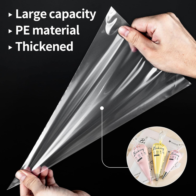 ???100 PCS THICKENED PIPING BAG? Is your previous Piping Bag leaking? Are you afraid of squeezing? No need now. The Vinland disposable piping bag is made of durable, explosion-proof, non-slip and food-grade materials, which are flexible, strong, reliable and thick enough to withstand the pressure of squeeze and frost, without breaking or leaking, and not easily damaged, you can Use with confidence. One of the essential products for professional cake bakers, and it is also suitable for beginners in home baking.