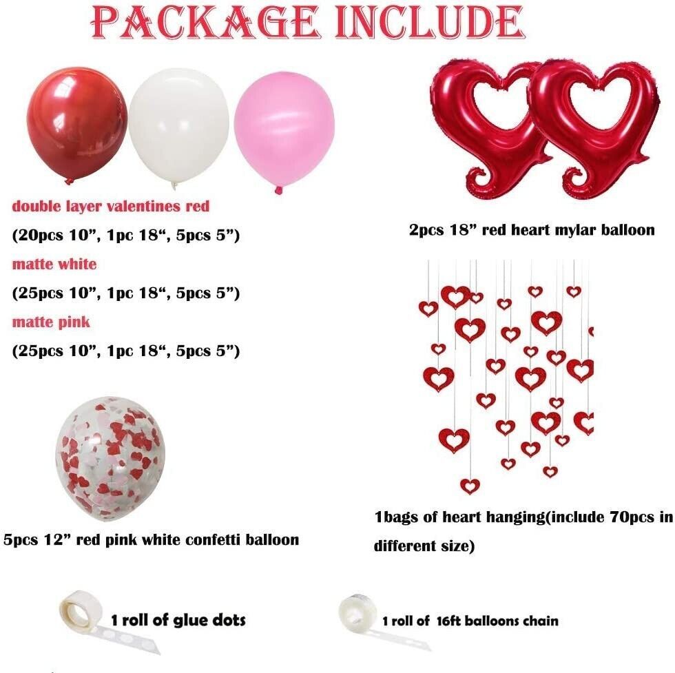 - 100 Valentines Day Balloon Arch Red White Pink Garland Party Decor Heart Hanging