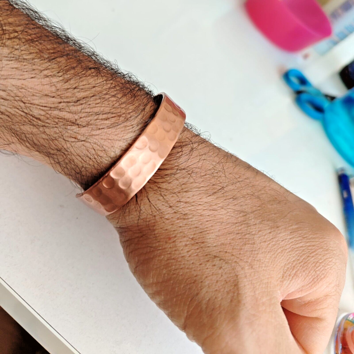Das Tragen von Kupfer hat verschiedene gesundheitliche Vorteile, es ist ein sehr beruhigendes und positives Metall und bietet auch Linderung bei Gelenkentzündungen und Hautallergien. Helfen Sie auch entlasten Symptome im Zusammenhang mit rheumatoider Arthritis und Osteoarthritis.