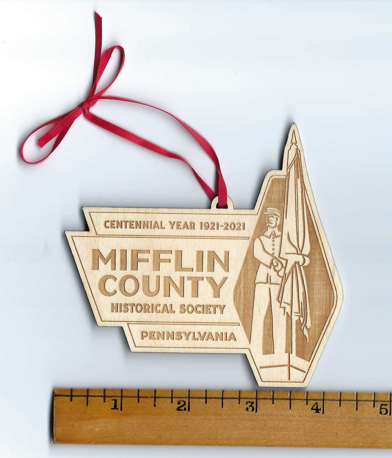 100th Anniversary Wooden Ornaments—Created by the Mifflin County High School Technology Student Assoc., these ornaments feature the new Centennial logo designed by Ryan Cherry. $5.00 each.