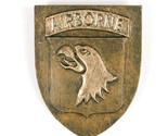 The 101st Airborne Division Ceramic Plaque is a handmade ceramic plaque that features the unit insignia of the 101st Airborne Division. These plaques are made in a small village in France where the 101st Airborne played a pivotal role in liberating France from Germany.