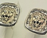 -Nicely sculpted Pair of 10k Lion heads in silver pillow shaped frame