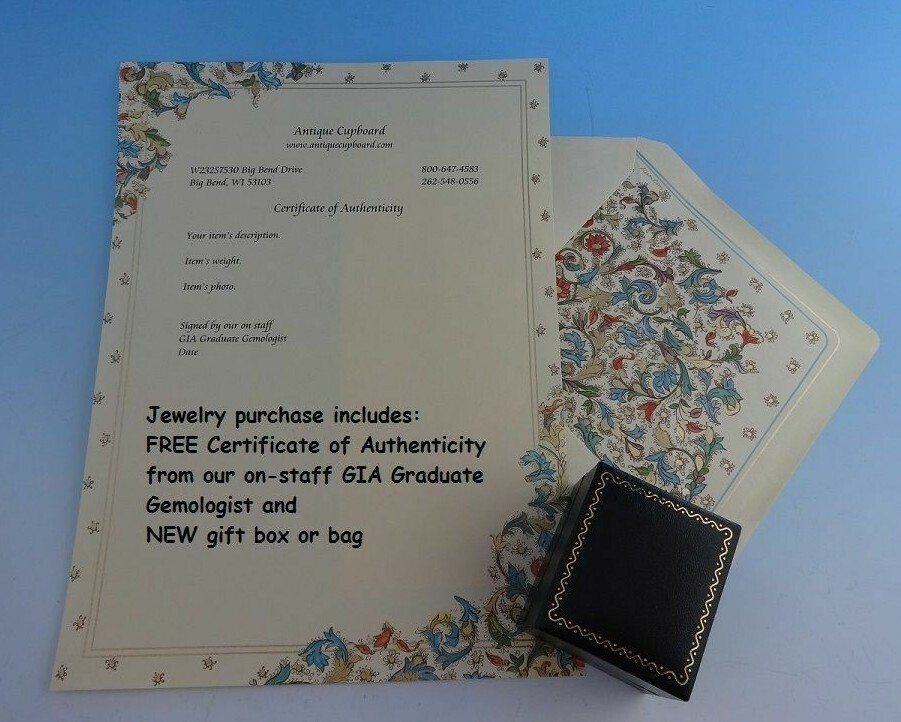 All of our jewelry is guaranteed authentic by our Graduate Gemologist of the Gemological Institute of America (GIA).