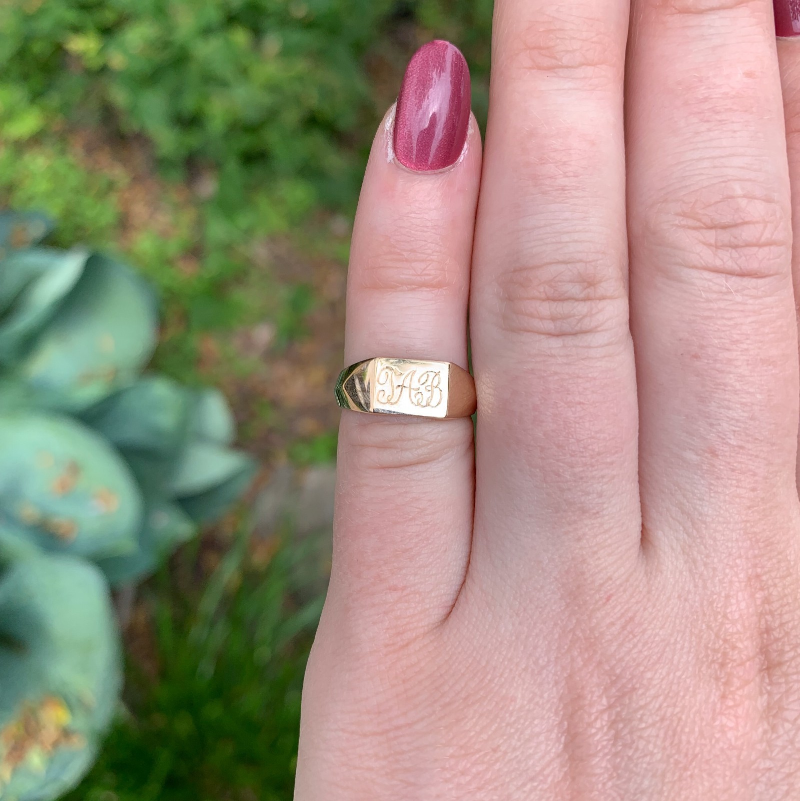 - 10k Yellow Gold Signet Ring with Initials "TAB" Size 3.75 Jewelry (#J7399)