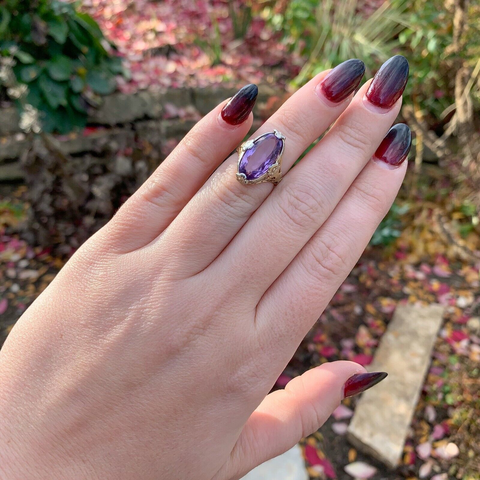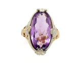 - 10k Yellow and White Gold Filigree Genuine Natural Amethyst Ring Flowers #J6346