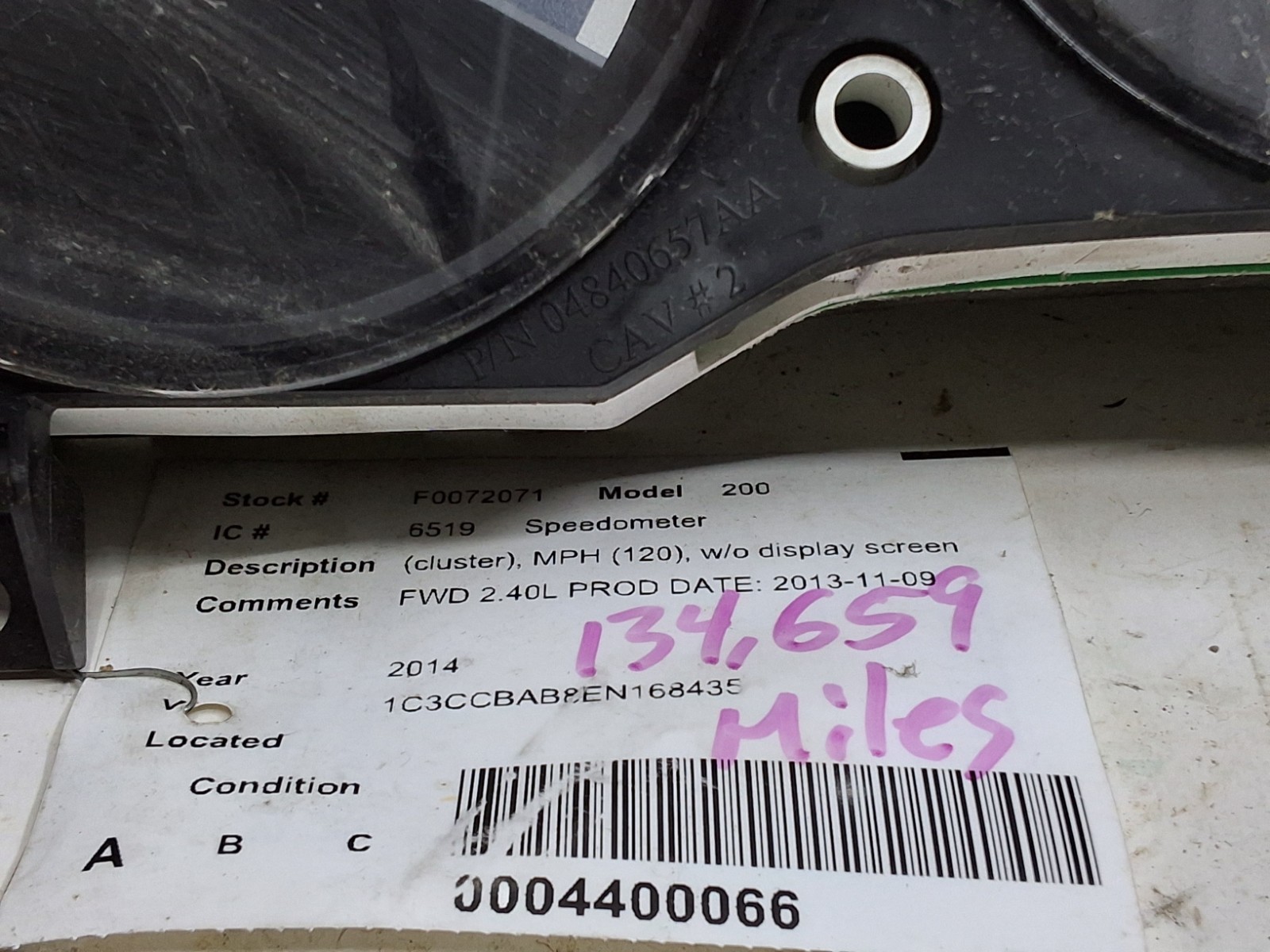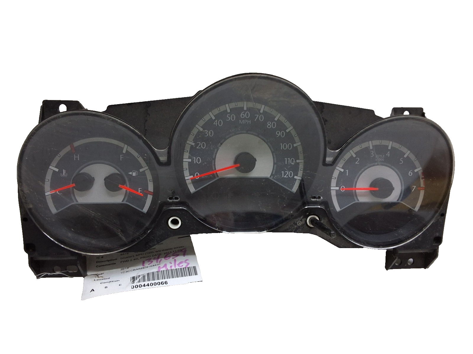 2011 through 2014 Chrysler 200 MPH speedometer without display screen. 134,659 mi.