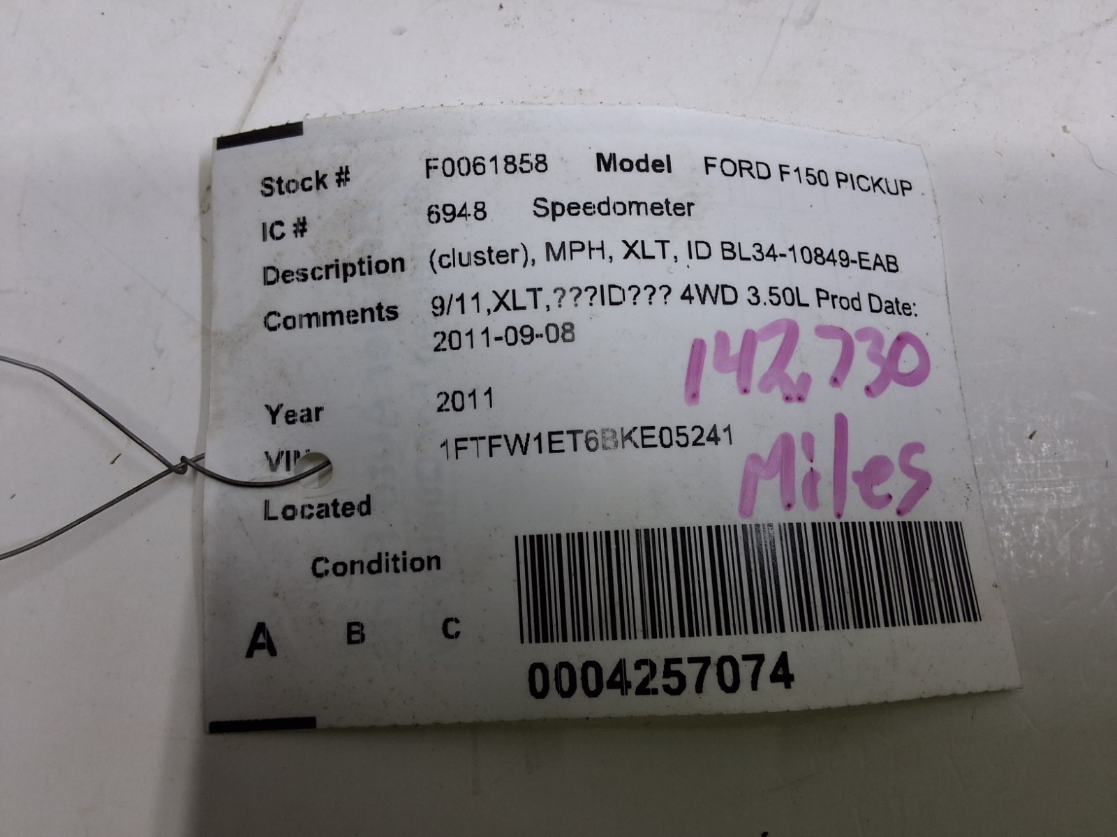 11 Ford F-150 XLT MPH speedometer 142,730 miles OEM BL34-10849-HAB