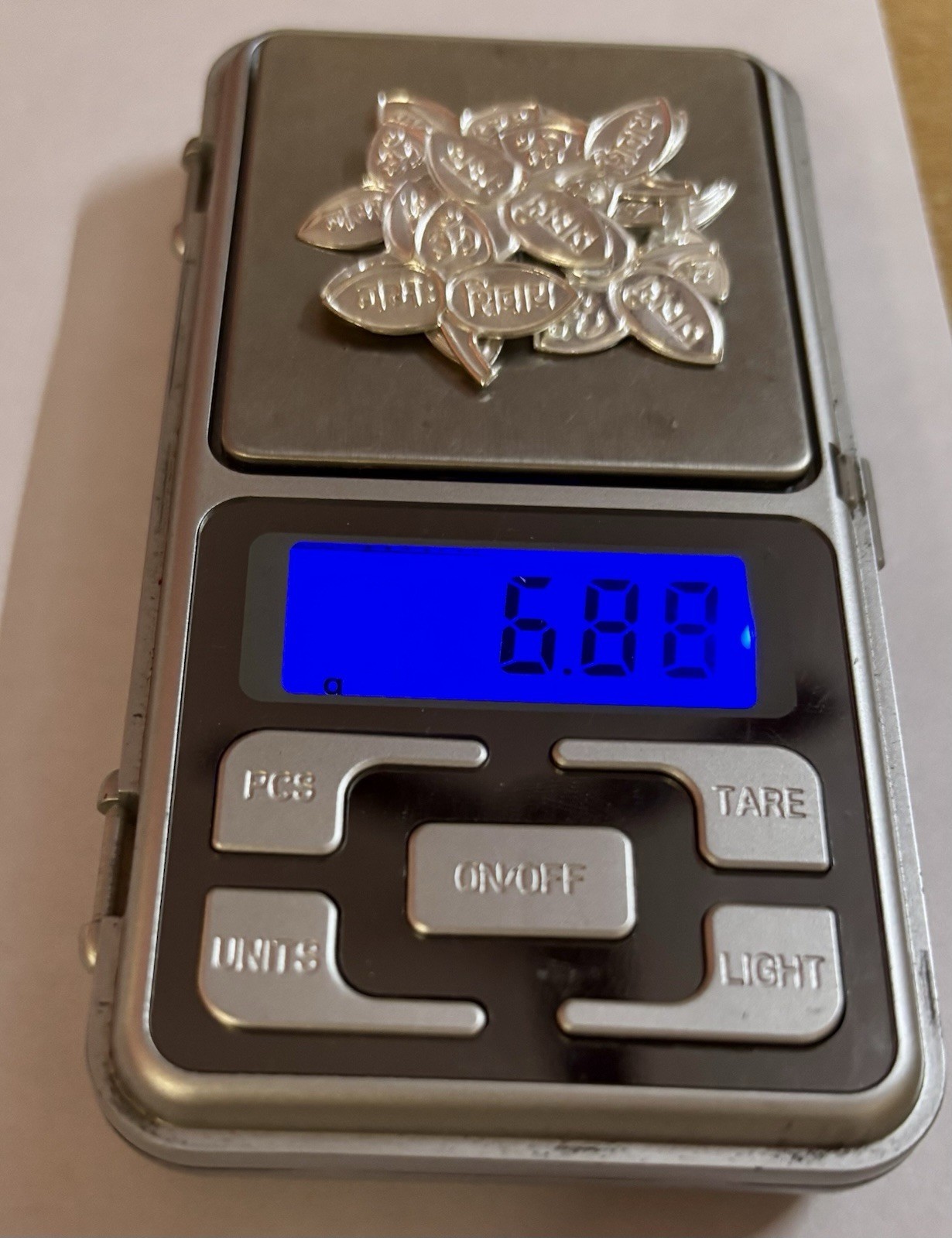 0.7 grams approximately fo11 pieces