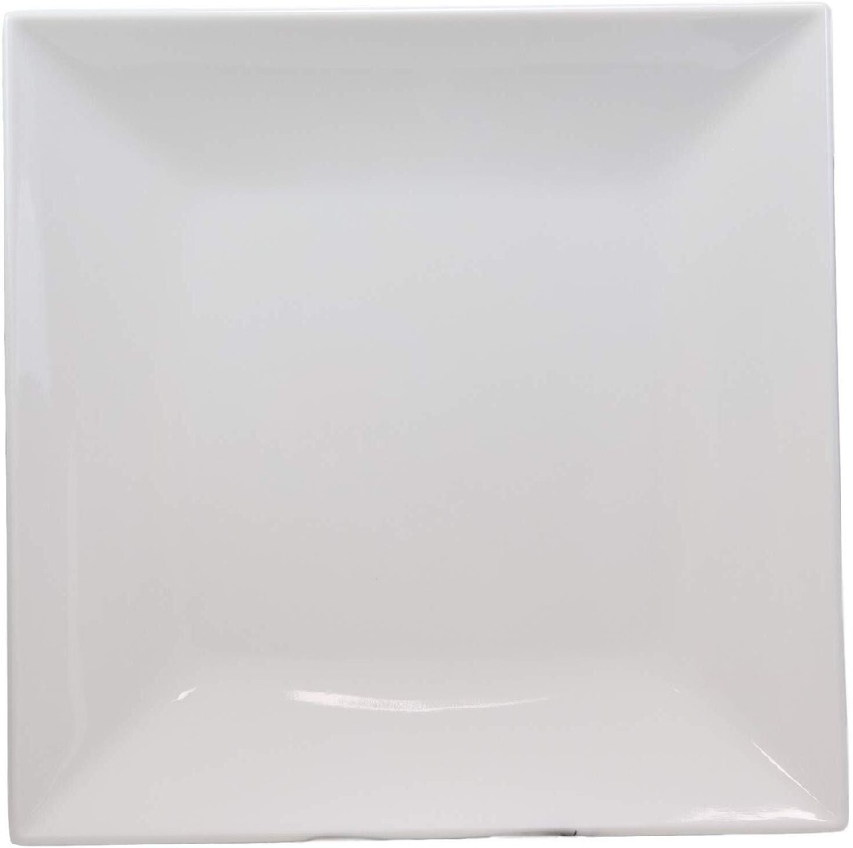 Ebros 11" White Melamine Modern Square Serving Dinner Plates or Dish Platters Set of 2