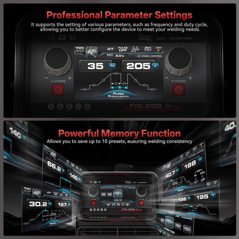 110V/220V Dual Voltage TIG Welding Machine with Foot Pedal, 205Amp Cold Welding Machine Large LCD Digital Display TIG-205 PRO