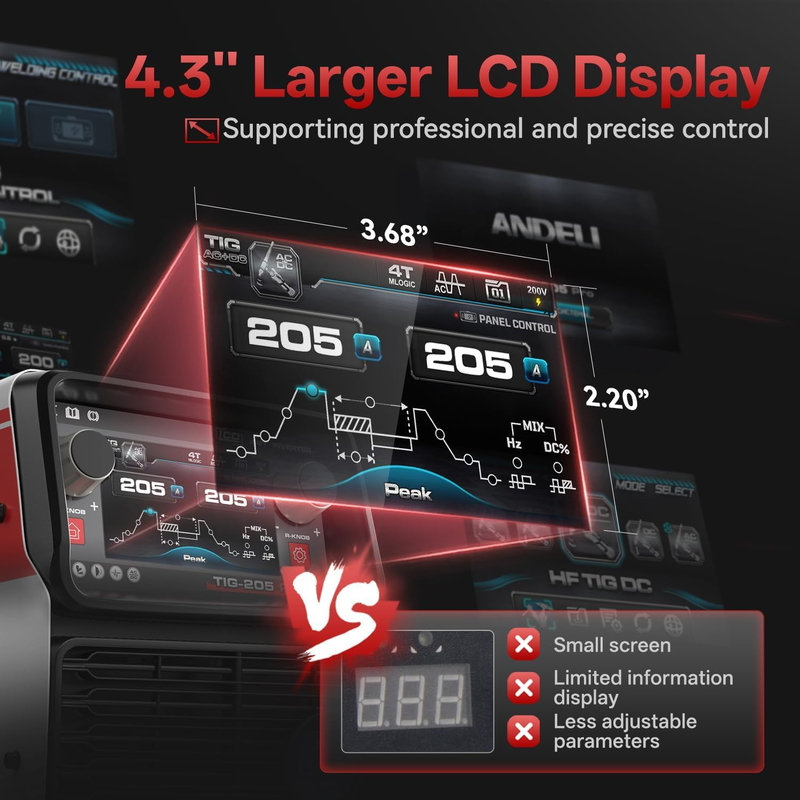 ???-?? ? ?? ?? ???????? ??? ???????ANDELI TIG-205 Pro AC/DC multiprocess welder combines AC+DC TIG, Stick(MMA), DC TIG, DC PULSE TIG, AC TIG, AC PULSE TIG, Lift TiG, AC Cold welding,DC Cold welding and Spot Welding with one machine. Welding aluminum, Carbon steel, Stainless steel, and Titanium, This Inverter welder is perfect for precision welding on auto repairs, fabrication, and DIY projects.