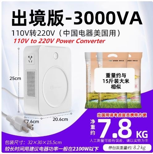 This power converter is used to directly use small appliances purchased from China in the United States. This power converter converts 110V voltage to 220V voltage, so that your small Chinese appliances can be safely plugged in and used directly in the United States.