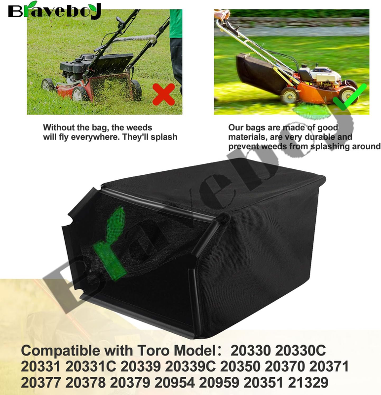 115-4664 Grass Bag - NO Metal Frame - by Braveboy, Compatible with Toro Lawn Mower XT675 59307 22" Lawn Mower 2009, Fits Model 20330 20331 20370 20371 20377 20378 More