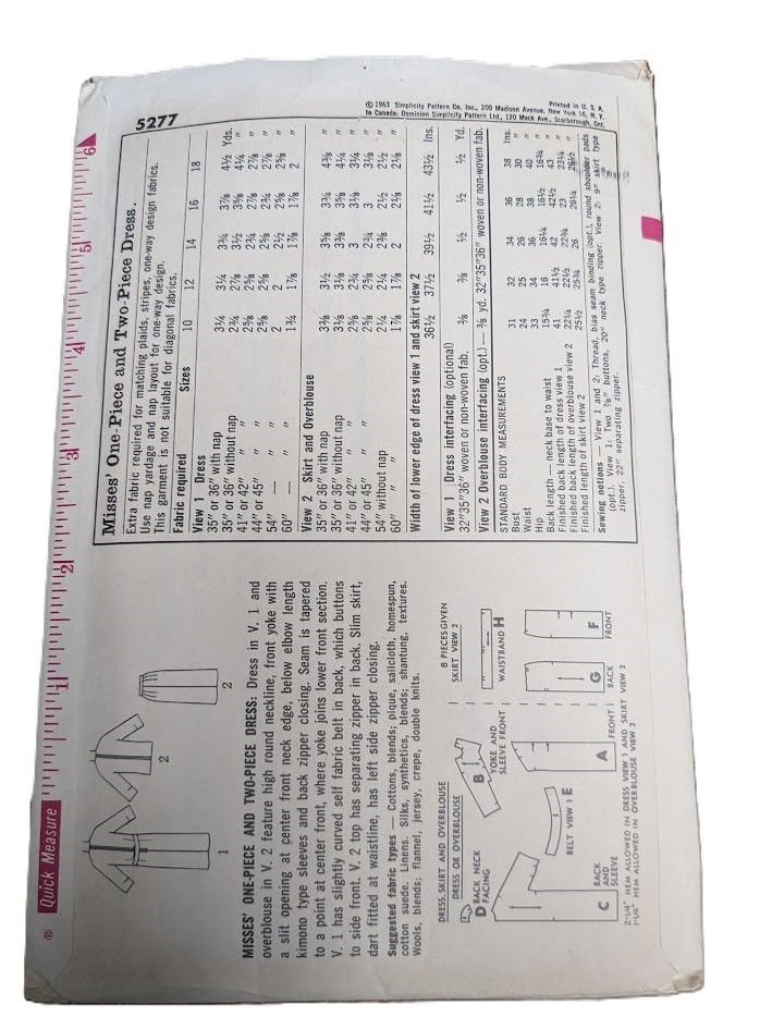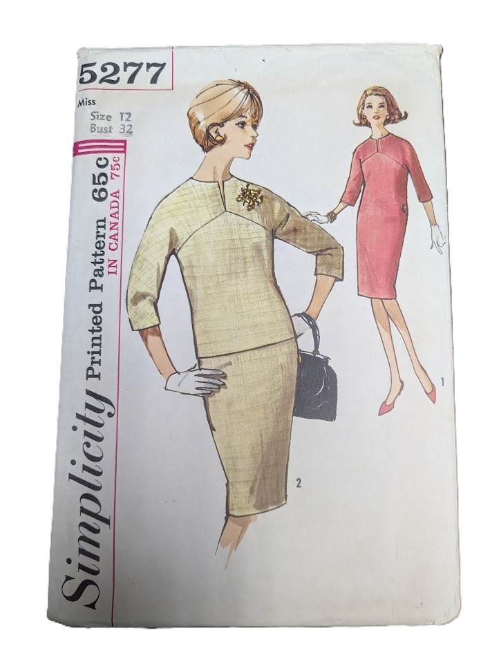 - 12/32 CC Vintage 1960s Sewing Pattern Simplicity 5277 1/2 Piece Dress